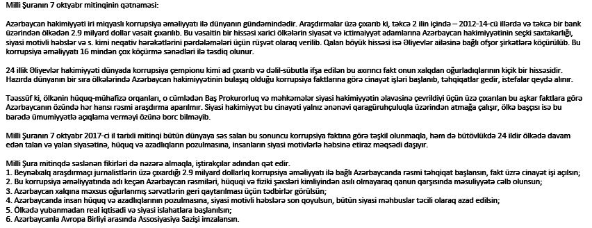 Elə ona görə idi ki, mitinqdən sonra hakimiyyət nümayəndələri bu mitinqi xarici qüvvələrin sifarişi ilə təşkil edilmiş mitinq kimi təqdim etməyə çalışdılar.