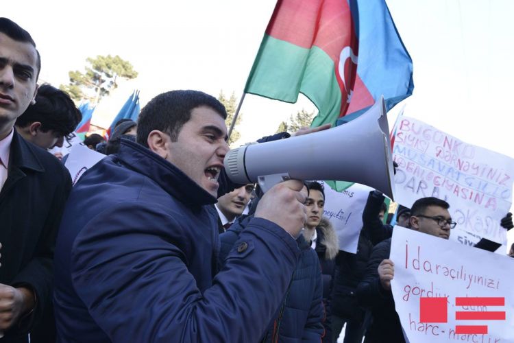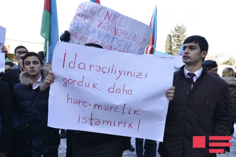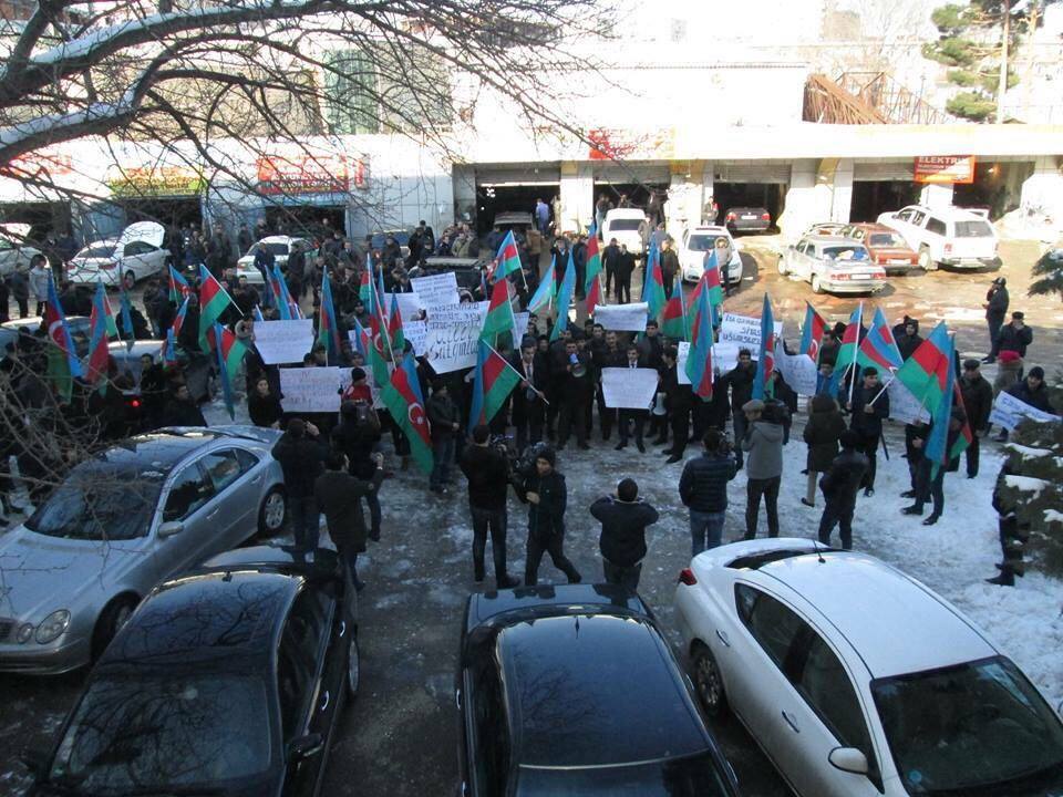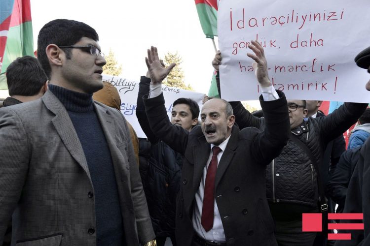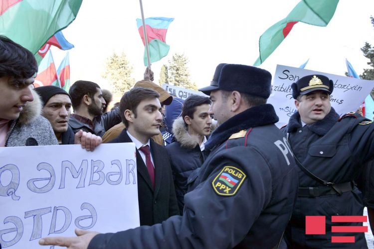 Aksiya iştirakçıları İsa Qəmbərin iki gün əvvəl Novxanıda Məmməd Əmin Rəsulzadənin doğum günü münasibəti ilə keçirilən tədbirdəki çıxışına etirazlarını bildiriblər.