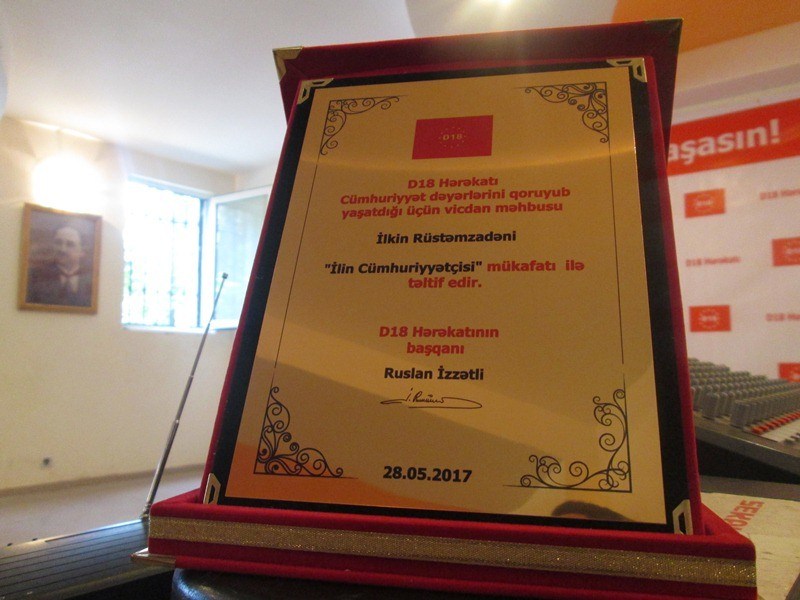 Mayın 27-də D18 Hərəkatının "İlin cümhuriyyətçisi" mükafatının təqdimetmə mərasimi keçirilib. Tədbir Müsavat Partiyasının qərargahında keçirilib.