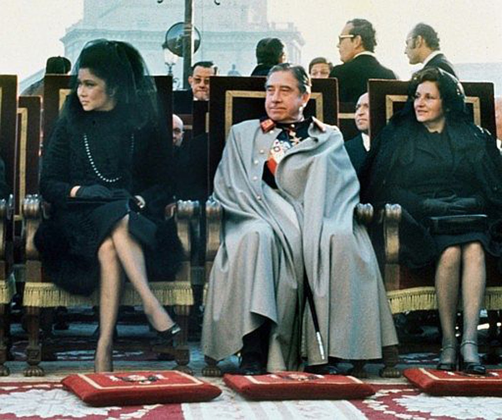 Çilinin keçmiş diktatoru Pinoçet, onun arvadı Lucia Hiriart (sağda) və İmelda Markos İspaniyanın keçmiş diktatoru Frankonun dəfnində. 1975[/caption]