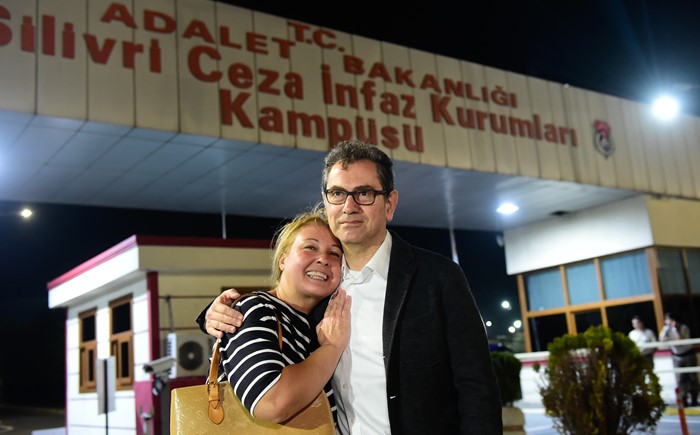 Yazıçı və jurnalist Kadri Gürsel həbsxana önündə xanımı ilə birlikdə.[/caption]